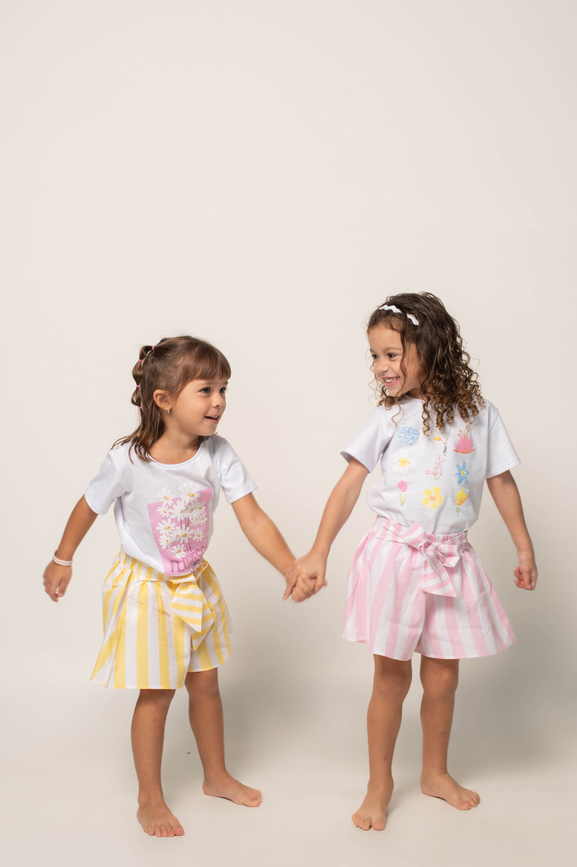 A T-shirt Flores é pura delicadeza! Feita em malha 100% algodão, ela traz estampa exclusiva das flores da Estampa Jardim da Flossy, com tons suaves e alegres que celebram a infância e a natureza. Possui modelagem confortável, ideal para o dia a dia, e combina perfeitamente com os shorts de tricoline e jardineiras da Flossy.