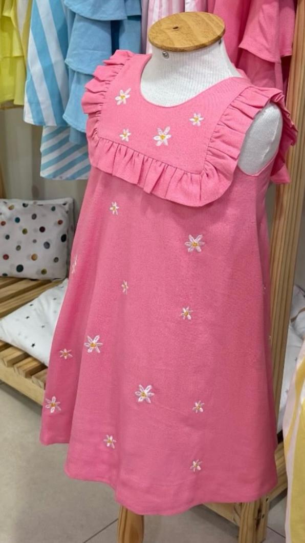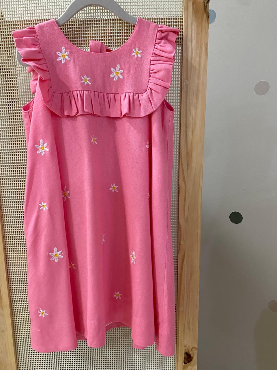 VESTIDO FLOSSY TODO BORDADO ROSA MARGARIDA COLEÇÃO JARDIM