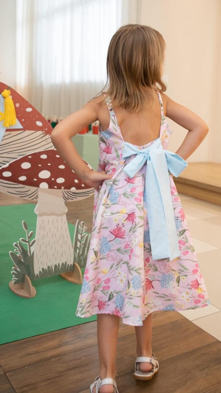 O destaque fica para o laço aplicado nas costas, que adiciona um toque de encanto e personalidade à peça. Logo abaixo, o detalhe em elástico garante perfeito ajuste e conforto, enquanto as alças reguláveis permitem adequação ideal ao corpo, acompanhando cada movimento das pequenas com leveza e liberdade.