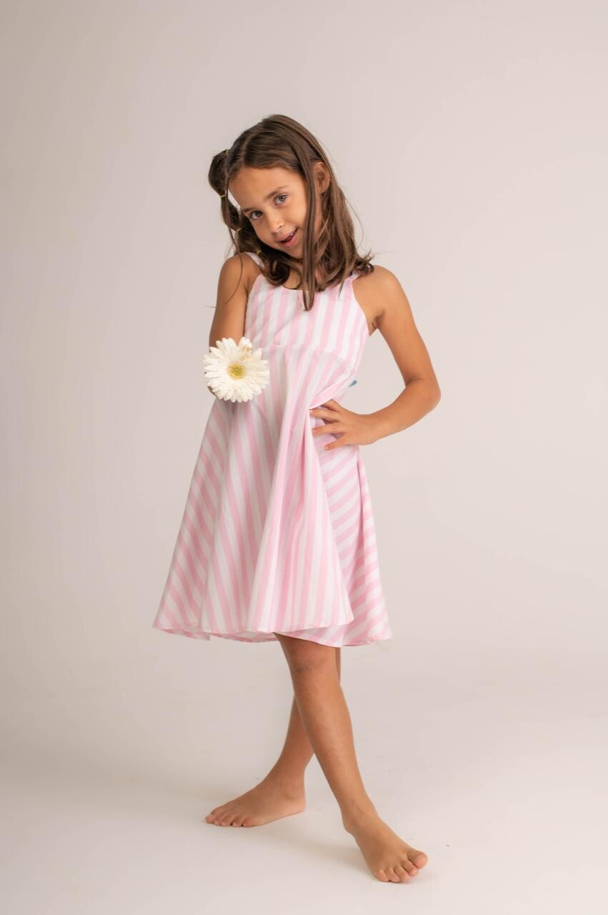 Vestido Flossy Margarida listrado rosa – Coleção Jardim