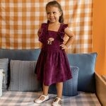 VESTIDO EM VELUDO COTELÊ COM BOTÕES FORRADOS E BORDADO DE COGUMELOS.