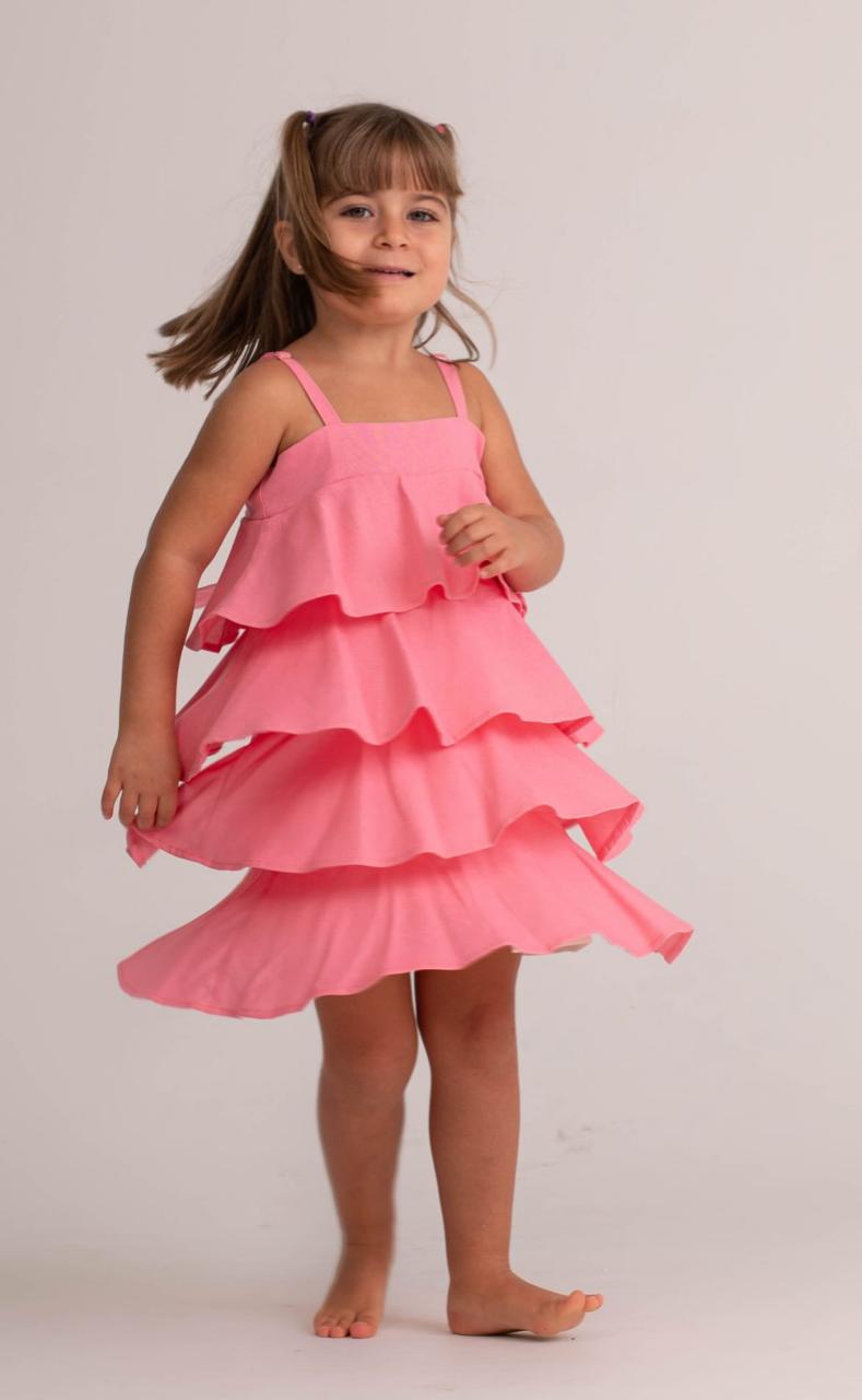 O desing é moderno e perfeito para os dias quentes. Sua alças são regulaveis, trazendo praticidade, para o vestir das pequenas. Seu forro em voil macio assegura bem-estar durante o uso, enquanto a modelagem ampla e fluida proporciona liberdade de movimentos com um toque clássico e atemporal.