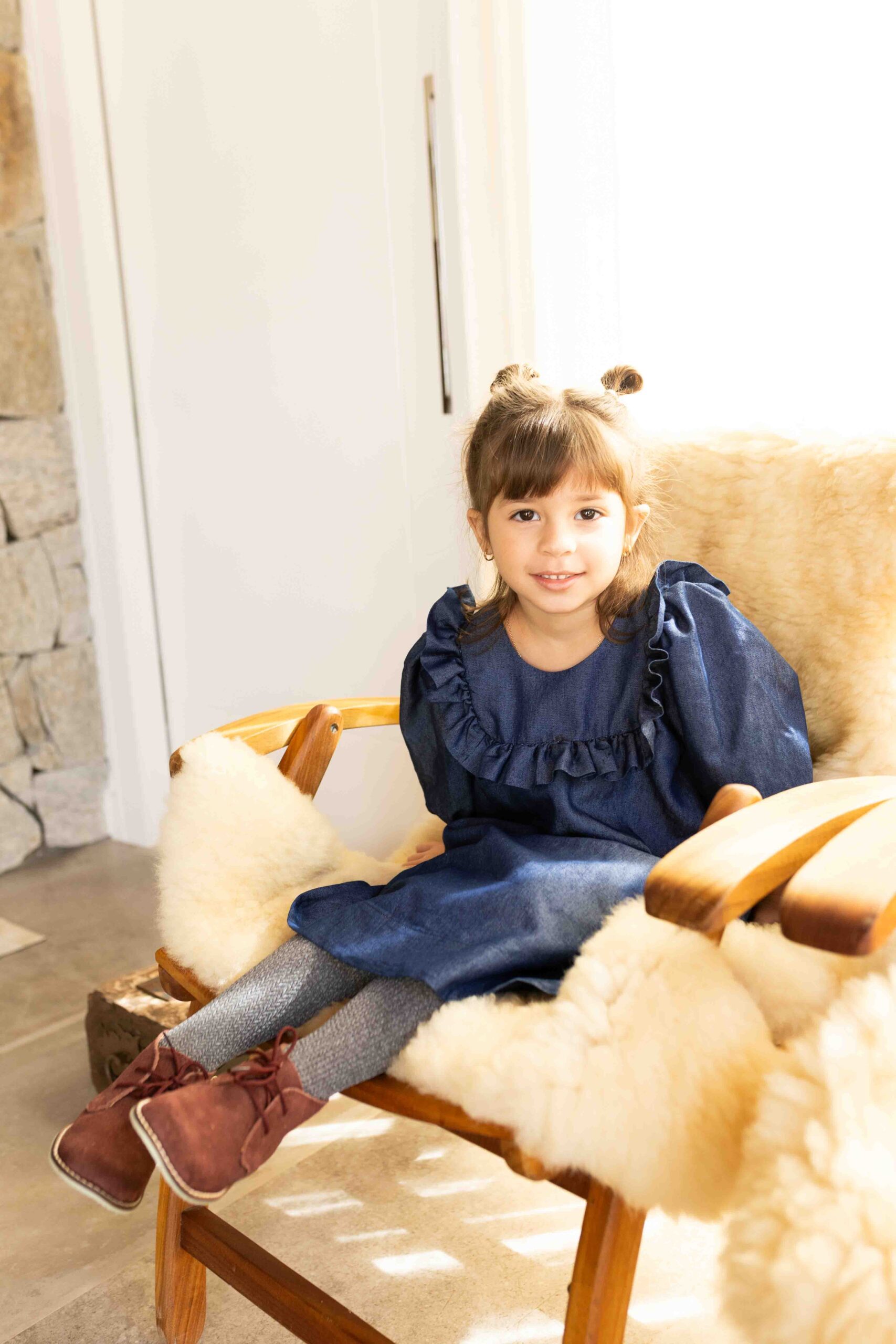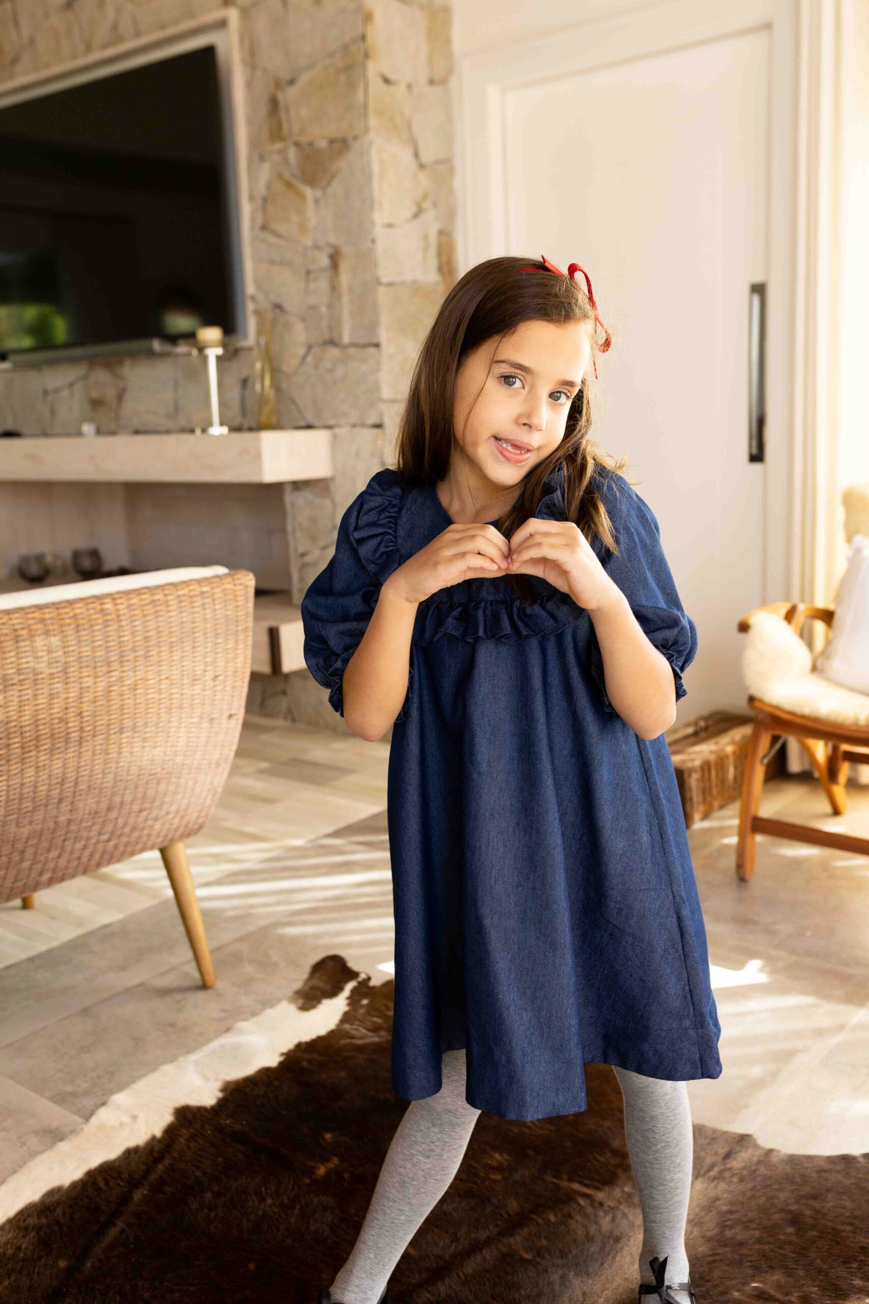 Um clássico repaginado com delicadeza e elegância. Confeccionado em jeans leve, o vestido conta com forro interno e modelagem ampla, proporcionando conforto e liberdade nos movimentos. As mangas 3/4 bufantes e o babado frontal trazem charme à peça, enquanto o ajuste em laço nas costas permite um caimento impecável. Ideal para compor looks estilosos com um toque retrô e moderno ao mesmo tempo.