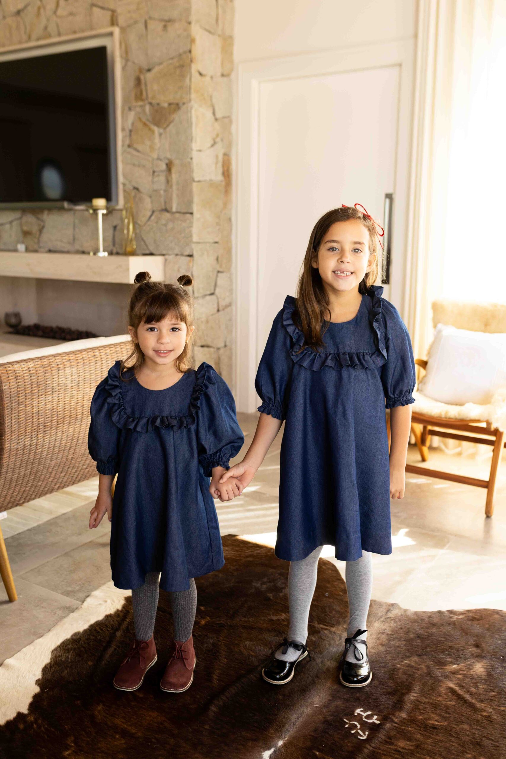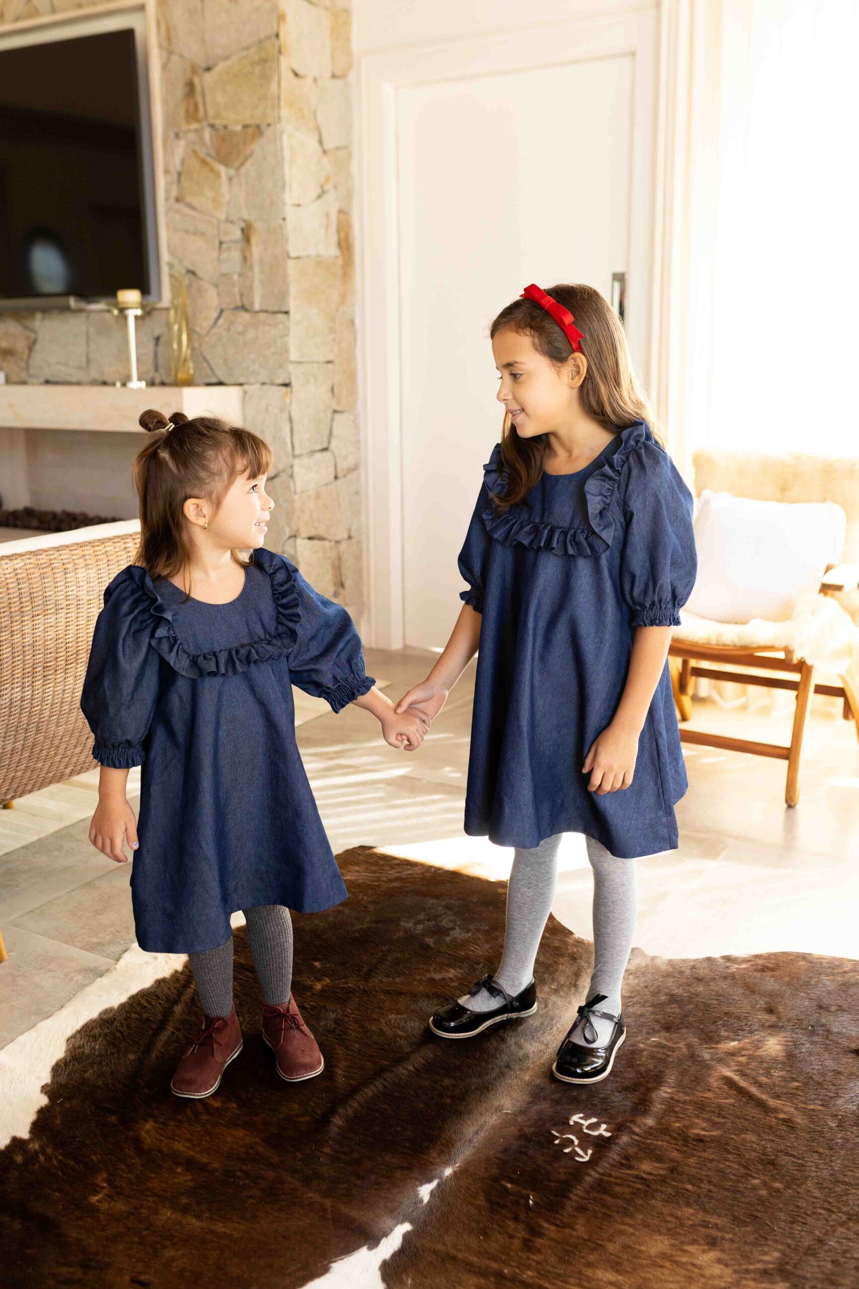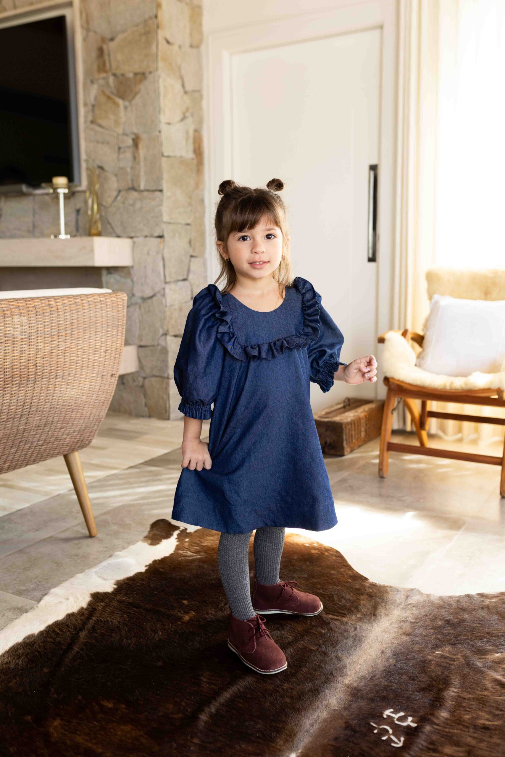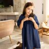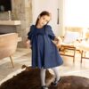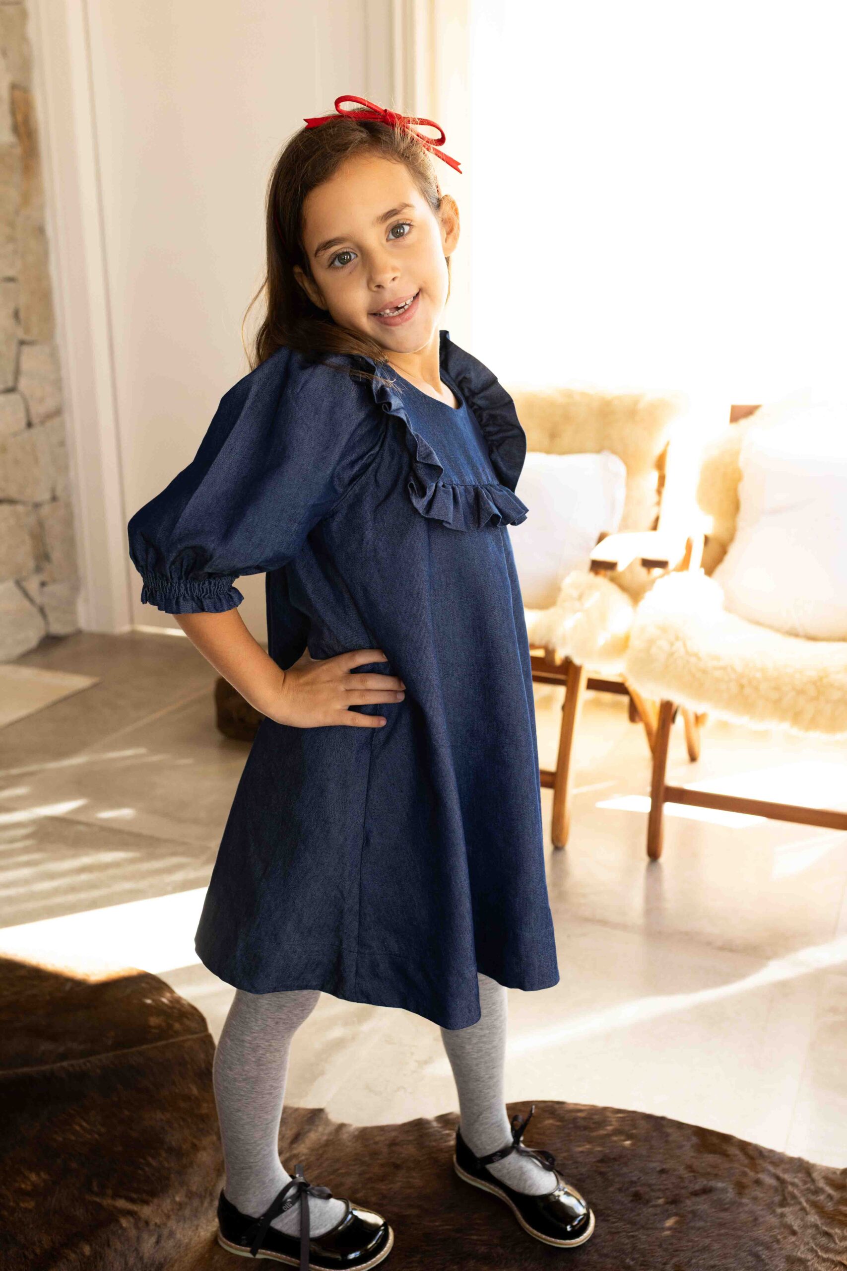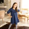 Um clássico repaginado com delicadeza e elegância. Confeccionado em jeans leve, o vestido conta com forro interno e modelagem ampla, proporcionando conforto e liberdade nos movimentos. As mangas 3/4 bufantes e o babado frontal trazem charme à peça, enquanto o ajuste em laço nas costas permite um caimento impecável. Ideal para compor looks estilosos com um toque retrô e moderno ao mesmo tempo.